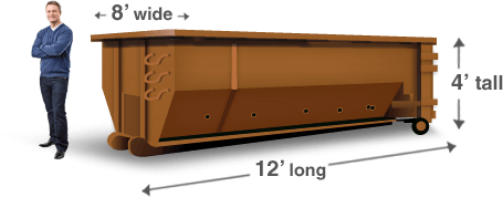 Your bin comes with a swinging door to make loading simple. Just walk large items into your container and distribute them across the bottom. Then close the door and toss small items over the sides. When you're finished working make sure everything is below the roll off dumpster's fill line to ensure a smooth pickup.